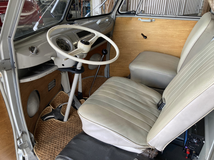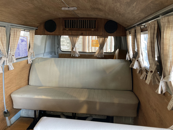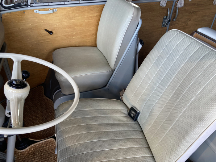 ・エンジン:1600cc、カドロンツインキャブ、12V、 ・左ハンドル、ボディ:ライトグレー ・インテリア:ホワイトグレー ・ベバストヒーター ・リアストレートアクスル ・フロントロワードスピンドル ・フロントディスクブレーキ ・サードシートベッドキット ・100vインバータ ・純正14インチホイル ・車検8年9月 ・Good Condition !!